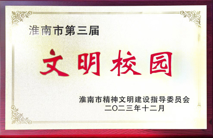 近日,淮南市精神文明建设指导委员会公布《关于表彰第三届淮南市文明校园的决定》,学校荣获“第三届淮南市文明校园”称号。
